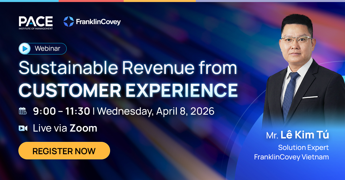 To help leaders address this challenge, PACE Institute of Management, in collaboration with FranklinCovey Vietnam, is organizing a specialized webinar: “Sustainable Revenue from Customer Experience”.